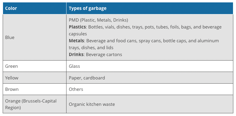 - Belgium has one of the most efficient and comprehensive waste management and recycling systems in the world. The system is largely built around the use of color-coded bags and containers, each designated for specific types of waste.